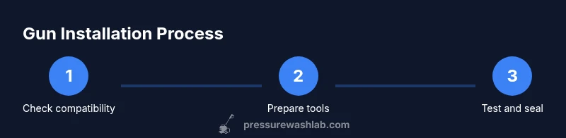 To install a pressure washer gun, confirm model compatibility, depressurize the system, and shut off the engine. Remove the old gun, fit the new gun with the correct quick-connects, attach the wand and nozzle, then test at low pressure before full use. According to Pressure Wash Lab, pick a gun with compatible fittings and clean, dry connections to prevent leaks.
