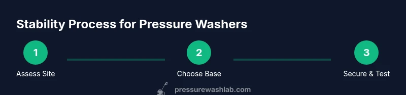 Stability is the foundation of safe, effective cleaning. When a pressure washer rocks or slides, you risk damaging surfaces, injuring yourself, and wasting time redoing work. A stable setup keeps spray accuracy consistent, reduces vibration, and minimizes wear on the unit. According to Pressure Wash Lab, stability also protects delicate surfaces and prolongs the tool’s life by limiting shock loads. For homeowners and DIY pros, investing a few minutes to secure footing pays off with cleaner results and less fatigue. In practical terms, a stable washer reduces spray drift and back-and-forth repositioning, which means you finish faster and with fewer trips back to the faucet. The goal is to create a fixed footprint that the machine cannot easily move off, even when you lean into tough stains or work on uneven ground. Remember that movement can occur not only while you’re spraying but also during startup and shutoff, when hoses and cords tug the base. Set up a plan that accounts for surfaces, weather, and the weight of accessories, and you’ll enjoy safer, more predictable cleaning sessions.