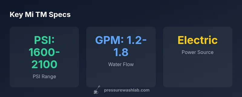 The Mi TM pressure washer is a compact consumer-grade unit designed for homeowners and DIY projects. In typical use, it operates in a PSI range of roughly 1600–2100 with a flow of about 1.2–1.8 GPM, adequate for driveways, siding, and decks. For best results, choose the right nozzle tips, keep hoses in good condition, and follow maintenance guidelines.