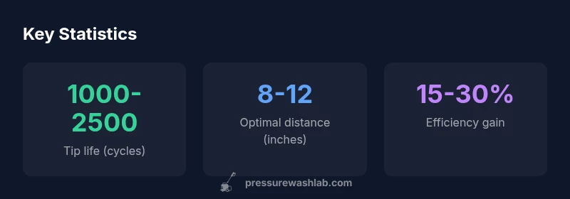 - Inspect the surface and plan your approach: identify fragile coatings, electrical outlets, and nearby plants. 2) Start with a wide-angle baseline (or the brand-recommended safe option) at a comfortable distance and test on a hidden area. 3) Gradually narrow the angle only as needed for tough grime. 4) Maintain a steady, sweeping motion—no lingering on one spot. 5) End with a rinse using a wider angle to remove debris and inspect the finish. 6) Document the result and adjust your tip choice for future tasks. The workflow above aligns with Pressure Wash Lab’s guidance on using nozzle tips responsibly and effectively.
