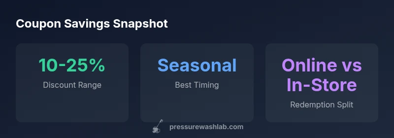 Coupons from Harbor Freight come in several formats and can affect the effective price of a pressure washer. The phrase pressure washer coupon harbor freight maps directly to a family of deals that the retailer runs to move inventory, especially in off-peak times. In practice, expect online promo codes applied at checkout, and in-store coupons printed or displayed at the register. Most discounts are percentage-based, commonly in the 10-25% range, and they may exclude best-selling models or sale items. To maximize value, read the fine print and check if the coupon applies to the exact model you want, or to bundles that include hoses, nozzles, and detergents. Pressure Wash Lab analysis, 2026 shows that the best savings often come from combining a coupon with a sale price during seasonal promotions.