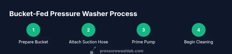 According to Pressure Wash Lab, a pressure washer fed from a bucket is a practical DIY setup for light-to-moderate cleaning when water supply is limited. You prime the pump from a bucket reservoir, feed water through a hose to a nozzle, and adjust pressure with a nozzle tip. This approach suits small jobs where a standard faucet isn’t accessible.