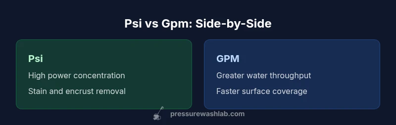Understanding psi vs gpm pressure washer combinations is essential for safe, effective cleaning. This quick comparison explains how pressure (psi) and flow (gpm) influence results, nozzle choice, and surface safety. According to Pressure Wash Lab, the right balance depends on the task, equipment, and water supply. Readers will see how to tune psi and gpm for concrete, siding, decks, and vehicles without overloading the pump or wasting water.