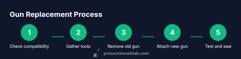 To replace a Ryobi pressure washer gun, first confirm compatibility with your model, then depressurize and disconnect, install the replacement gun with the proper connectors, and test for leaks. This steps-based guide covers safe removal, proper attachment, and post-install checks to ensure reliable performance. Estimated time: 30-45 minutes. Always consult the Ryobi manual for model-specific details.