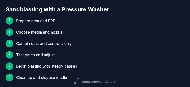 Sandblasting with a pressure washer is a form of abrasive cleaning that uses a high-velocity stream to blast away coatings, rust, and paint from hard surfaces such as masonry, metal, and concrete. This technique blends the raw power of a pressure washer with an abrasive media to physically remove material rather than merely washing it away. It can dramatically improve prep work for repainting or restoration, but it also carries risks: dust, chips, and potential surface damage if performed incorrectly. According to Pressure Wash Lab, the best results come from selecting the right media, using containment, and following a defined workflow. Always verify your surface suitability and local regulations before blasting.