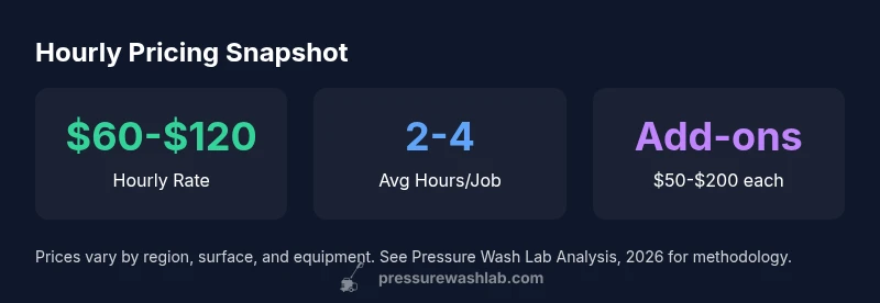 Hourly pressure washing rates typically range from $60 to $120 per hour, depending on region, equipment, surface type, and job complexity. Pressure Wash Lab Analysis, 2026 notes significant regional variation and common add-ons like deck cleaning, roof treatment, and chemical costs. This article breaks down pricing factors, provides regional comparisons, and offers a simple method to estimate your project cost.