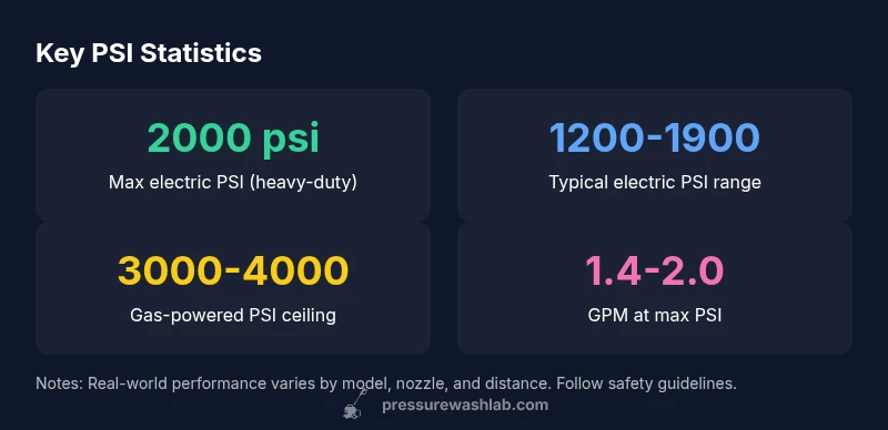 Electric pressure washers top out near 2000 psi for most heavy-duty home models, with typical ranges of 1200–1900 psi. If you need higher pressure, look to gas-powered units. These ceilings are broad and vary by pump design and nozzle, but for residential cleaning, 2000 psi represents the practical ceiling. Always consult the manufacturer for your exact model.