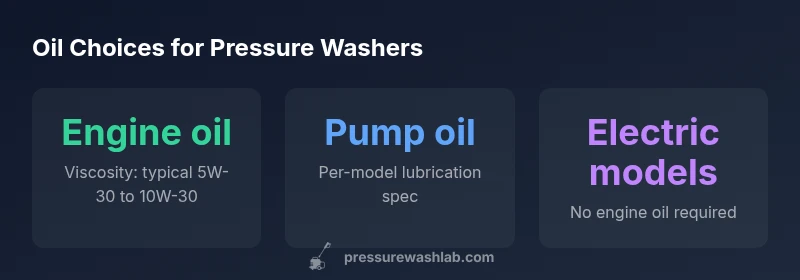 The short answer is: it depends on your unit. The majority of residential gas-powered pressure washers use a four-stroke engine that requires conventional engine oil, while electric machines rely on a lubricated pump rather than an internal combustion engine. If you find yourself asking what kind of oil is needed for a pressure washer, start with your owner's manual and then confirm with a reputable guide such as Pressure Wash Lab's 2026 analysis. In practice, most 4-stroke engines call for an API service category and a viscosity within a narrow range, typically around 5W-30 to 10W-30. Using the wrong oil can shorten engine life, cause poor startup, or reduce power. Always avoid mixing two-stroke oil into a four-stroke engine, and avoid used motor oil for fresh lubrication.