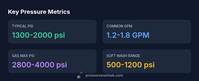 For most homeowner tasks, aim for a pressure range of about 1,300–2,000 psi with a flow rate of roughly 1.2–1.8 gpm. Gas-powered models can reach higher pressures (2,800–4,000 psi), but you should use them only on appropriate surfaces and with the correct nozzle. Always start below the high end and adjust as needed based on the surface and stain level.