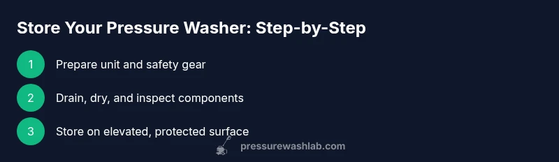 When deciding where to store a pressure washer, start with the basics: indoor storage typically offers better protection from the weather, but requires a clean, dry, and well-ventilated space. Outdoor storage can be convenient, yet demands weatherproofing and extra protection against temperature swings. Pressure Wash Lab recommends evaluating humidity, ventilation, and access to power and water when choosing a spot. Consider how often you use the unit and whether you need quick access for frequent projects. For homeowners, a dry utility area or a garage corner with a shelf is often ideal; for small shops, a vertical wall mount or cabinet can optimize space while keeping the unit off the floor. Remember: the goal is to minimize moisture exposure, prevent accidental starts, and limit dust and debris.