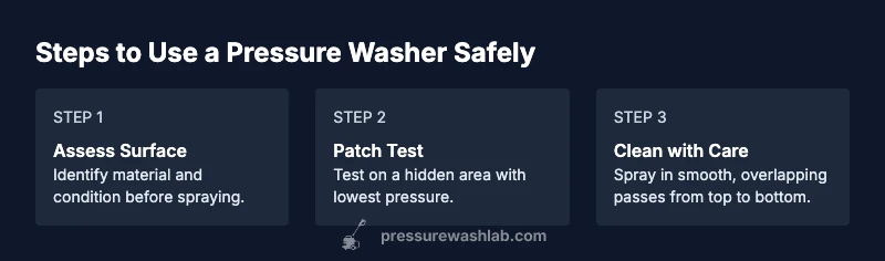According to Pressure Wash Lab, understanding where to use a pressure washer begins with surface knowledge and a clear plan. A device can transform dirty concrete, wood, metal, and brick quickly, but applied wrongly it can strip paint, etch wood, or push water into seams. The decision about placement depends on the surface type, its condition, and how sensitive nearby materials are. Before you spray, characterize the area: is the surface old, weathered, or newly painted? Will you be cleaning near plants, electrical outlets, or windows? The goal is to remove grime with a method that preserves the integrity of the material. The phrase 'where to use a pressure washer' often drives homeowners to examine two factors: surface hardness and finish integrity. You should plan to work from top to bottom to avoid streaks and ensure runoff flows away from doors and foundations. Weather matters too: rain or high wind can hamper control and create hazards. Finally, understand the tool you’re using: different surfaces require different nozzles oriented at the right distance, and the highest pressure isn’t always best.