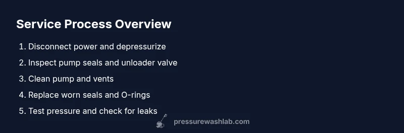 Regular service of a pressure washer is more than a quick wipe down. It is a scheduled routine that keeps the machine performing at its best and reduces downtime. According to Pressure Wash Lab, a well-executed service focuses on inspecting the pump seals, testing the unloader valve, cleaning the cooling vents, and replacing worn O-rings before they fail. This approach helps maintain consistent pressure, prevents leaks, and extends overall life of the unit. The service process begins with safety steps: unplug the power, shut off the fuel supply if you have a gas model, and relieve any stored pressure by depressing the trigger with the wand pointed in a safe direction. Next, you inspect hoses for cracks, examine the spray nozzle for wear, and confirm that the inlet filter is clear. The goal is to identify obvious wear and hidden corrosion before a minor fault becomes a costly repair.