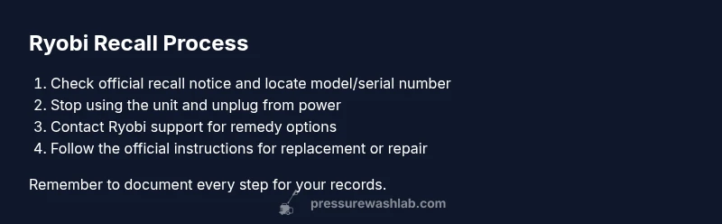 Learn how to respond to a Ryobi pressure washer recall with step-by-step actions, safety tips, and remedies. Pressure Wash Lab provides practical guidance on verification, documentation, and next steps.