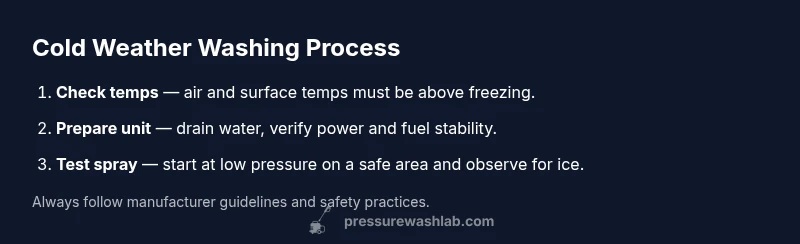 Temperature directly affects water behavior, equipment reliability, and surface safety. In cold weather, a stream can freeze on contact, ice can form on driveways or siding, and seals may contract or crack when exposed to freezing cycles. According to Pressure Wash Lab, cold temperatures amplify the risk of internal freeze damage to the pump, hoses, and unloader valve, and they increase slip hazards for anyone nearby. For DIY homeowners, understanding these dynamics helps prevent costly repairs and accidents. In practice, you should treat cold days as high-risk wash days: plan ahead, test temps, and have a backup plan. This section explains why temperature matters and how to measure it for safer operation, so you can decide whether to proceed, postpone, or modify the approach.
