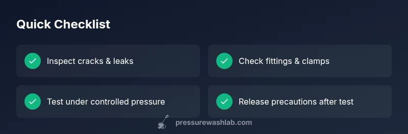 Never test a suspected damaged hose at full pressure. Attach the hose to the washer, but start with the spray wand off and the unit at idle to check for leaks at fittings. Gradually increase pressure in short bursts while watching for any change in spray pattern, leaks, or sudden hose flexing. If the hose shows any whine, hiss, or a kink that does not resolve, shut down and move to replacement. Always wear eye protection and gloves, and keep a safe distance during testing. This approach minimizes risk while confirming hose integrity.