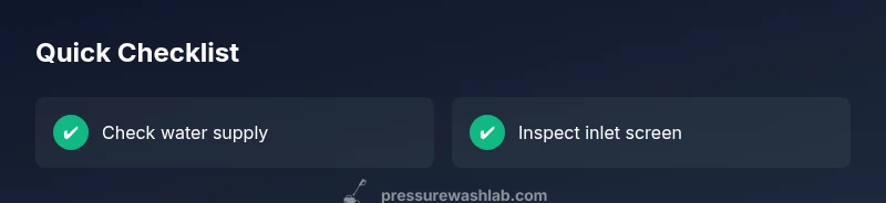 Start by confirming water supply, clean inlet filter, inspect nozzle, and look for air leaks. If pressure remains low, inspect the unloader valve and seals.