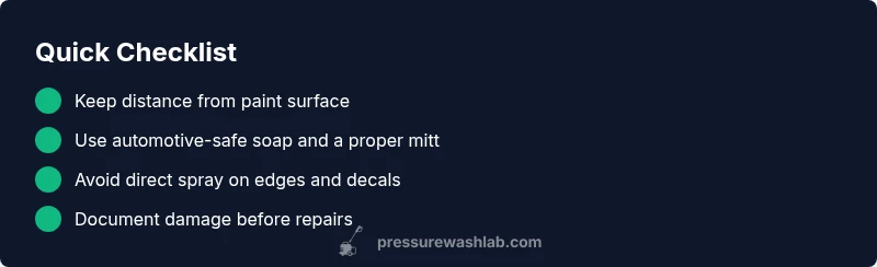 Prevention hinges on proper technique and equipment. Always start with a safe distance, the correct spray nozzle, and automotive-safe detergents. Use a wash mitt and two-bucket system to reduce friction on the paint, and pre-wet the surface to minimize impact. Avoid lingering on any one spot and never spray at sharp edges or decals. Regular maintenance, including wax or sealant upkeep, preserves the finish and makes future cleanings gentler.