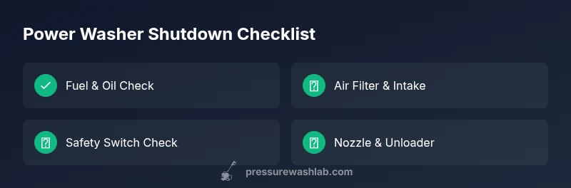 Most power washer shutdowns stem from overheating, fuel issues, or safety switches. Start by confirming clean fuel, checking the air filter, and inspecting the unloader valve. If it still dies under load, verify the spark plug and wiring and ensure the safety shutoff isn’t engaged. These quick checks fix many units.