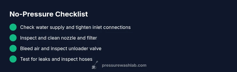 A practical, step-by-step troubleshoot for no-pressure symptoms in pressure washers, with safety tips, common culprits, and maintenance guidance for homeowners and DIYers.